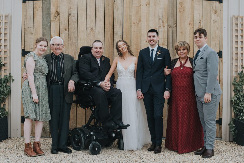 After swapping into my powered wheelchair, it was easier to get around. I could raise myself higher for the photos and the reception. Bailey’s dad, myself and best man Eddie shared our speeches. Without knowing each other’s speeches, they turned into a stand-up comedy competition. The wedding and reception was a happy time.