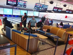 Those attending Zone Bowling at Woodville are able to bowl without assistance from the staff or other people. They select the ball that best suits them, retrieve the ball after it is returned from the lane and observe the scores. When they’ve finished bowling, they return to the seating area and eat, drink and chat with their bowling friends. And they can do it safely.