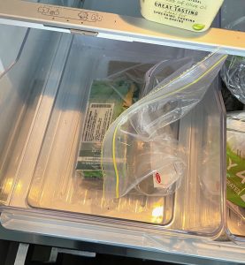 I give the seeds good water, without disturbing the soil. The seeds are sealed up with plastic tape and placed into the fridge.
