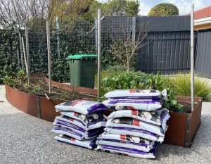 I visit Bunnings to carefully stack fourteen bags of mushroom compost, one bag at a time, onto a large trolley. I slowly push the trolley through the store and load it into the back of my van. Each bag weighs around twenty-five kilograms.